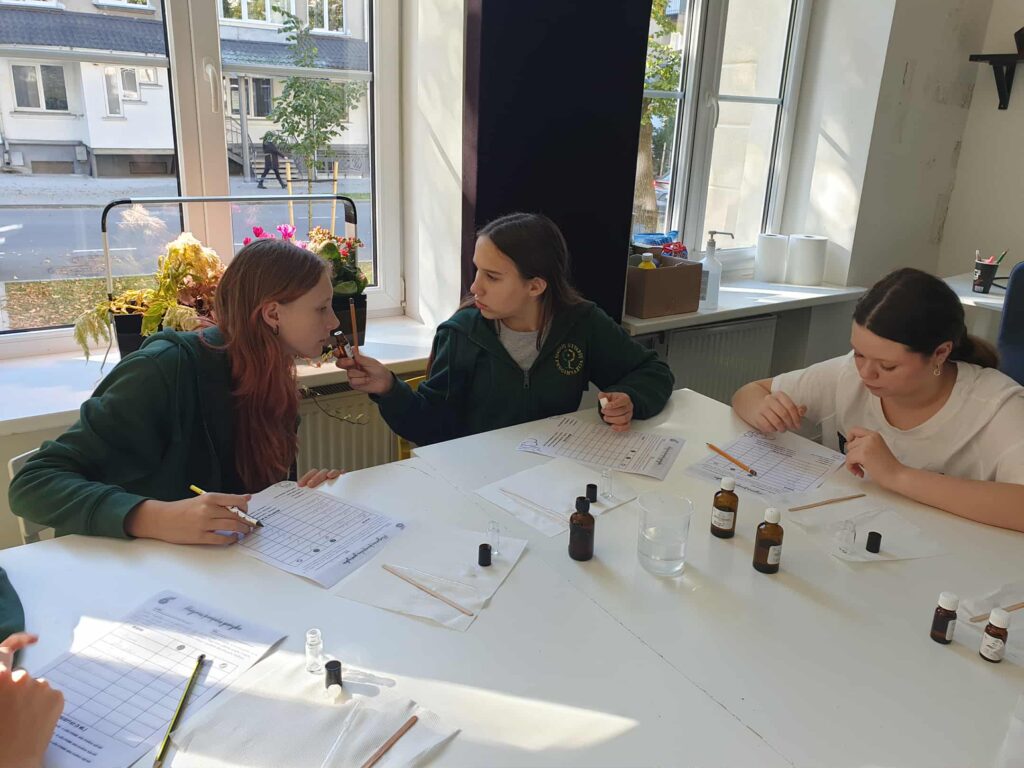 7a klasės mokiniai lankėsi Šiaulių techninės kūrybos centre ir dalyvavo edukacijoje apie kvepalus. Sužinojo, kaip kvapai lydėjo žmoniją per įvairius laikotarpius, patys kūrė savo unikalų aromatą.