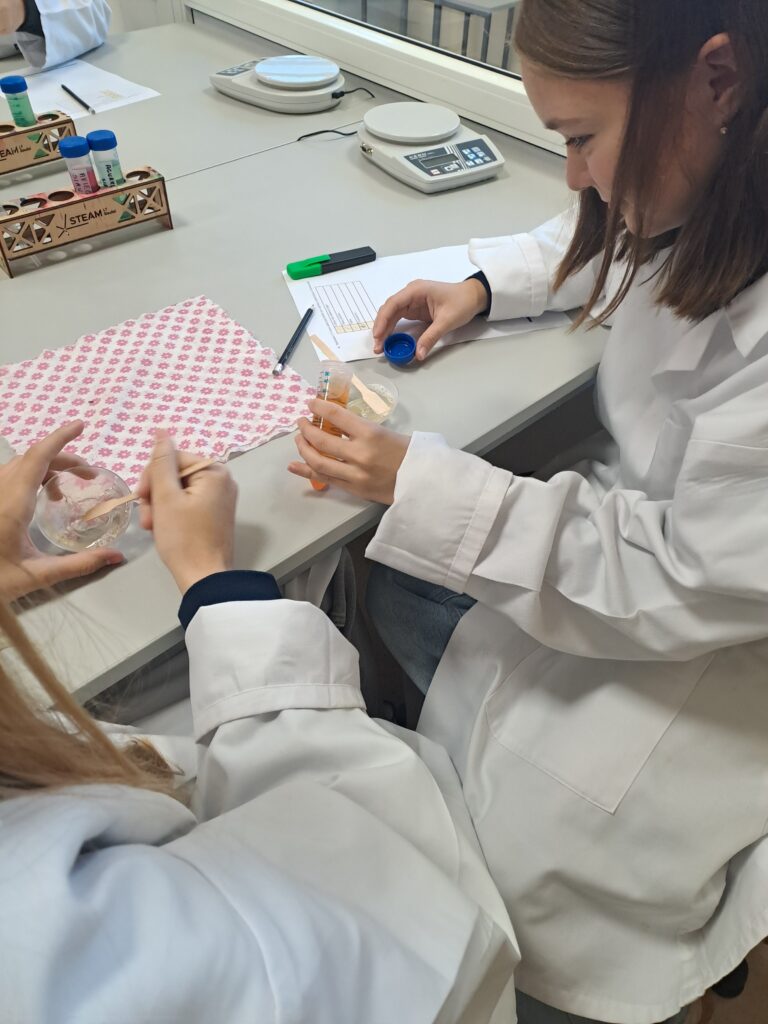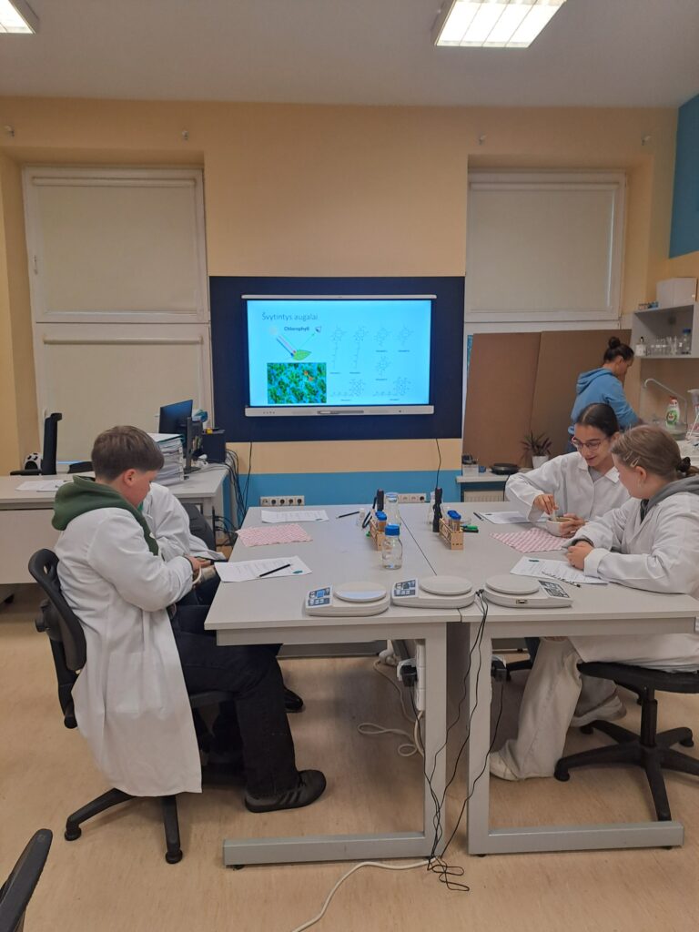 7b klasės mokiniai apsilankė VU ŠA STEAM centrą. Dalyvavo edukacinėse veiklose ,,Švytintis desertas”. Mokiniai atliko bandymus su kaštonų žieve, pamatė kaip susidaro aeskulinas, kokia molekulė suteikia kaštono žievei švytėjimo. Po bandymų patys gamino šviečiančią želė, kurią ragavo su įvairiais skoniais.