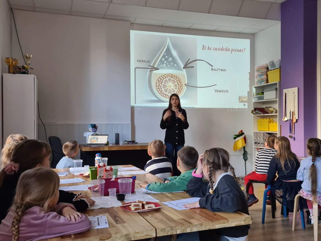 PUG 3 mokiniai  dalyvaudami mokyklos  organizuotoje “Tyrėjų dienų“ renginiuose vyko į „Jaunųjų technikų centro“ edukaciją „Nuo karvutės iki sumuštinio“. Edukacijos metu leidomės į smagią ir pažintinę kelionę po sviesto pasaulį. Sužinojome, kaip paprastas pienas, kurį duoda karvutė, virsta gardžiu sviestu ant mūsų sumuštinio. Vaikai sužinojo, kuo minta karvės ir kodėl jų mityba tokia svarbi, pamatė kaip pienas surenkamas, o vėliau perdirbamas. Iš arčiau pažvelgėme į sviesto gamybos procesus – nuo senųjų, tradicinių būdų, iki šiuolaikinių, ir kartu pasigaminome sviestą. Stebėjome ir matavome, kiek gramų sviesto galima pasigaminti iš 50 ml pieno.