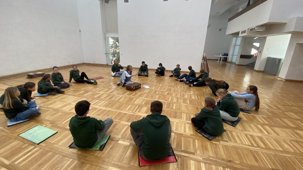5c klasės mokiniai „Pasakojimų laboratorijoje“ tyrinėjo, kas daro pasakojimą paveikų – kokie elementai sukuria įtampą, išlaiko dėmesį ir palieka emocinį atgarsį, kodėl istorijos mums reikalingos ir kaip jos veikia mūsų mintis, jausmus, tapatybę.